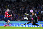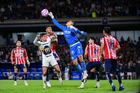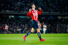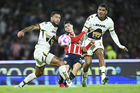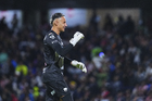 Ciudad de México, 5 de octubre de 2025. Keylor Navas en festejo de gol, durante el partido correspondiente a la jornada 12 del torneo Apertura 2025 de la Liga BBVA MX, entre los Pumas de la UNAM y las Chivas Rayadas del Guadalajara, realizado en el estadio Olímpico Universitario. Foto: Imago7/ Diego Padilla