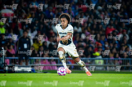 Ciudad de México, 5 de octubre de 2025. José Caicedo, durante el partido correspondiente a la jornada 12 del torneo Apertura 2025 de la Liga BBVA MX, entre los Pumas de la UNAM y las Chivas Rayadas del Guadalajara, realizado en el estadio Olímpico Universitario. Foto: Imago7/ Etzel Espinosa