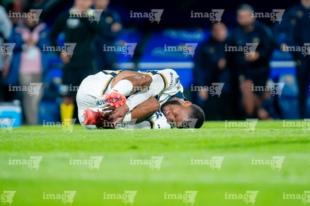 Ciudad de México, 5 de octubre de 2025. Pedro Vite resultó lesionado, durante el partido correspondiente a la jornada 12 del torneo Apertura 2025 de la Liga BBVA MX, entre los Pumas de la UNAM y las Chivas Rayadas del Guadalajara, realizado en el estadio Olímpico Universitario. Foto: Imago7/ Alexis Chavez