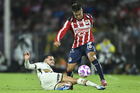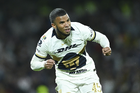 Ciudad de México, 5 de octubre de 2025. José Caicedo, durante el partido correspondiente a la jornada 12 del torneo Apertura 2025 de la Liga BBVA MX, entre los Pumas de la UNAM y las Chivas Rayadas del Guadalajara, realizado en el estadio Olímpico Universitario. Foto: Imago7/ Alexis Chavez
