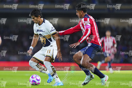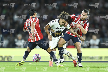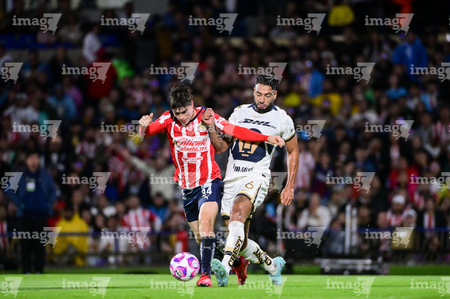 Ciudad de México, 5 de octubre de 2025. , durante el partido correspondiente a la jornada 12 del torneo Apertura 2025 de la Liga BBVA MX, entre los Pumas de la UNAM y las Chivas Rayadas del Guadalajara, realizado en el estadio Olímpico Universitario. Foto: Imago7/