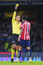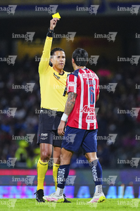 Ciudad de México, 5 de octubre de 2025. Omar Govea resultó amonestado, durante el partido correspondiente a la jornada 12 del torneo Apertura 2025 de la Liga BBVA MX, entre los Pumas de la UNAM y las Chivas Rayadas del Guadalajara, realizado en el estadio Olímpico Universitario. Foto: Imago7/ Diego Padilla