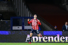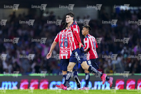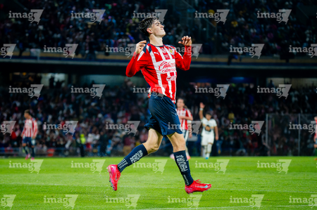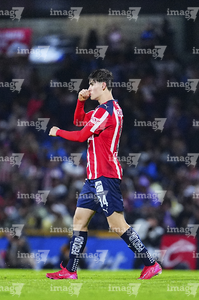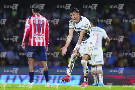 Ciudad de México, 5 de octubre de 2025. Armando González en festejo de gol, durante el partido correspondiente a la jornada 12 del torneo Apertura 2025 de la Liga BBVA MX, entre los Pumas de la UNAM y las Chivas Rayadas del Guadalajara, realizado en el estadio Olímpico Universitario. Foto: Imago7/ Manlio Contreras