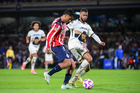 Ciudad de México, 5 de octubre de 2025. Adalberto "Coco" Carrasquilla, durante el partido correspondiente a la jornada 12 del torneo Apertura 2025 de la Liga BBVA MX, entre los Pumas de la UNAM y las Chivas Rayadas del Guadalajara, realizado en el estadio Olímpico Universitario. Foto: Imago7/ Diego Padilla