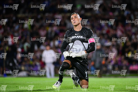 Ciudad de México, 5 de octubre de 2025. Keylor Navas, durante el partido correspondiente a la jornada 12 del torneo Apertura 2025 de la Liga BBVA MX, entre los Pumas de la UNAM y las Chivas Rayadas del Guadalajara, realizado en el estadio Olímpico Universitario. Foto: Imago7/ Diego Padilla
