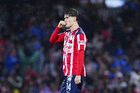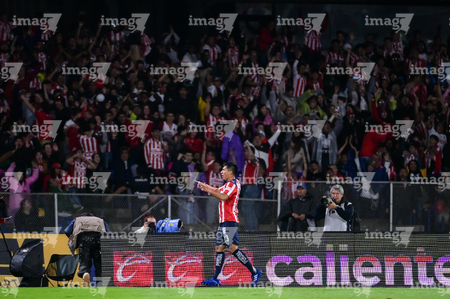 Ciudad de México, 5 de octubre de 2025. Raúl Rangel en festejo, durante el partido correspondiente a la jornada 12 del torneo Apertura 2025 de la Liga BBVA MX, entre los Pumas de la UNAM y las Chivas Rayadas del Guadalajara, realizado en el estadio Olímpico Universitario. Foto: Imago7/ Alexis Chavez