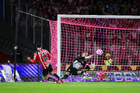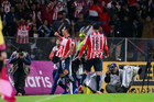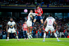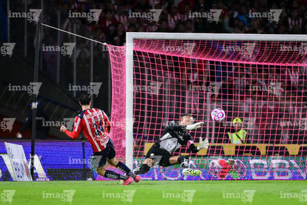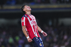 Ciudad de México, 5 de octubre de 2025. Armando González anota gol en fuera de lugar, durante el partido correspondiente a la jornada 12 del torneo Apertura 2025 de la Liga BBVA MX, entre los Pumas de la UNAM y las Chivas Rayadas del Guadalajara, realizado en el estadio Olímpico Universitario. Foto: Imago7/ Diego Padilla