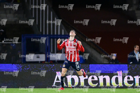 Ciudad de México, 5 de octubre de 2025. Daniel Aguirre en festejo de gol, durante el partido correspondiente a la jornada 12 del torneo Apertura 2025 de la Liga BBVA MX, entre los Pumas de la UNAM y las Chivas Rayadas del Guadalajara, realizado en el estadio Olímpico Universitario. Foto: Imago7/ Diego Padilla