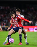Ciudad de México, 5 de octubre de 2025. Armando González y Ángel Azuaje, durante el partido correspondiente a la jornada 12 del torneo Apertura 2025 de la Liga BBVA MX, entre los Pumas de la UNAM y las Chivas Rayadas del Guadalajara, realizado en el estadio Olímpico Universitario. Foto: Imago7/ Etzel Espinosa