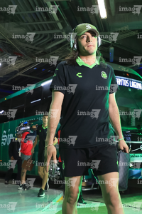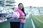 Torreón, Coahuila, 18 de octubre de 2025. Embajadora de la Campaña Rosa para la concientización del Cáncer de Mama, durante el partido correspondiente a la jornada 13 del torneo Apertura 2025 de la Liga BBVA MX, entre los Guerreros de Santos Laguna y los Esmeraldas del León, realizado en el estadio Corona. Foto: Imago7/Sebastian Laureano Miranda