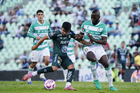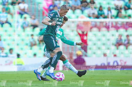 Torreón, Coahuila, 18 de octubre de 2025. Cristian Dajome (I), durante el partido correspondiente a la jornada 13 del torneo Apertura 2025 de la Liga BBVA MX, entre los Guerreros de Santos Laguna y los Esmeraldas del León, realizado en el estadio Corona. Foto: Imago7/Sebastian Laureano Miranda