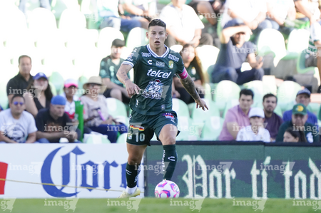 Torreón, Coahuila, 18 de octubre de 2025. James Rodríguez, durante el partido correspondiente a la jornada 13 del torneo Apertura 2025 de la Liga BBVA MX, entre los Guerreros de Santos Laguna y los Esmeraldas del León, realizado en el estadio Corona. Foto: Imago7/Sebastian Laureano Miranda