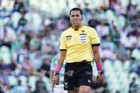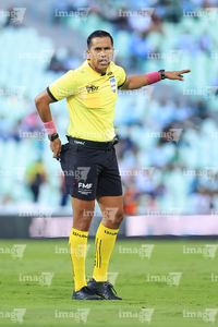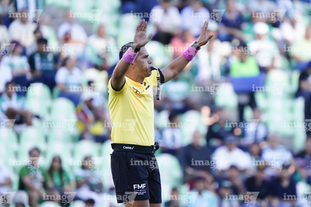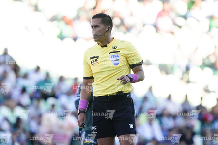 Torreón, Coahuila, 18 de octubre de 2025. Daniel Quintero Huitrón, árbitro central, durante el partido correspondiente a la jornada 13 del torneo Apertura 2025 de la Liga BBVA MX, entre los Guerreros de Santos Laguna y los Esmeraldas del León, realizado en el estadio Corona. Foto: Imago7/ Saul Perales