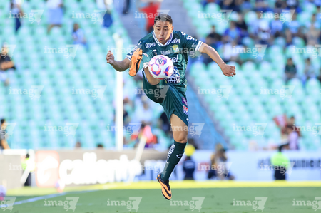 Torreón, Coahuila, 18 de octubre de 2025. Francisco Villalba, durante el partido correspondiente a la jornada 13 del torneo Apertura 2025 de la Liga BBVA MX, entre los Guerreros de Santos Laguna y los Esmeraldas del León, realizado en el estadio Corona. Foto: Imago7 Erick Saavedra
