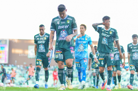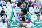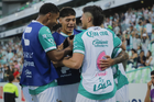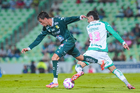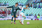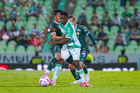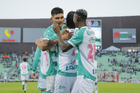 Torreón, Coahuila, 18 de octubre de 2025. Jugadores de León, durante el partido correspondiente a la jornada 13 del torneo Apertura 2025 de la Liga BBVA MX, entre los Guerreros de Santos Laguna y los Esmeraldas del León, realizado en el estadio Corona. Foto: Imago7/Sebastian Laureano Miranda