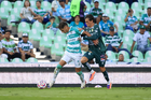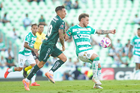 Torreón, Coahuila, 18 de octubre de 2025. Nicolás Fonseca, durante el partido correspondiente a la jornada 13 del torneo Apertura 2025 de la Liga BBVA MX, entre los Guerreros de Santos Laguna y los Esmeraldas del León, realizado en el estadio Corona. Foto: Imago7/Sebastian Laureano Miranda