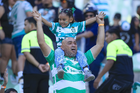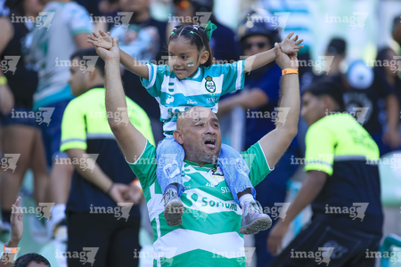 Torreón, Coahuila, 18 de octubre de 2025. Afición, durante el partido correspondiente a la jornada 13 del torneo Apertura 2025 de la Liga BBVA MX, entre los Guerreros de Santos Laguna y los Esmeraldas del León, realizado en el estadio Corona. Foto: Imago7/ Saul Perales
