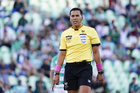Torreón, Coahuila, 18 de octubre de 2025. Daniel Quintero Huitrón, árbitro central, durante el partido correspondiente a la jornada 13 del torneo Apertura 2025 de la Liga BBVA MX, entre los Guerreros de Santos Laguna y los Esmeraldas del León, realizado en el estadio Corona. Foto: Imago7/Sebastian Laureano Miranda