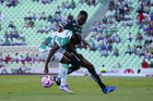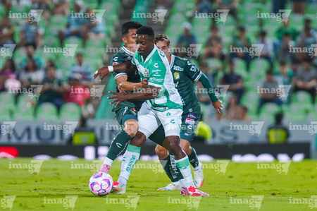 Torreón, Coahuila, 18 de octubre de 2025. Kevin Balanta, durante el partido correspondiente a la jornada 13 del torneo Apertura 2025 de la Liga BBVA MX, entre los Guerreros de Santos Laguna y los Esmeraldas del León, realizado en el estadio Corona. Foto: Imago7/ Saul Perales
