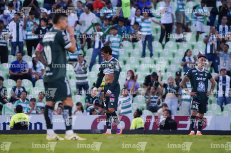 Torreón, Coahuila, 18 de octubre de 2025. Nicolás Fonseca en lamento, durante el partido correspondiente a la jornada 13 del torneo Apertura 2025 de la Liga BBVA MX, entre los Guerreros de Santos Laguna y los Esmeraldas del León, realizado en el estadio Corona. Foto: Imago7/Sebastian Laureano Miranda
