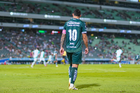 Torreón, Coahuila, 18 de octubre de 2025. Iván Moreno en lamento, durante el partido correspondiente a la jornada 13 del torneo Apertura 2025 de la Liga BBVA MX, entre los Guerreros de Santos Laguna y los Esmeraldas del León, realizado en el estadio Corona. Foto: Imago7/Sebastian Laureano Miranda