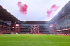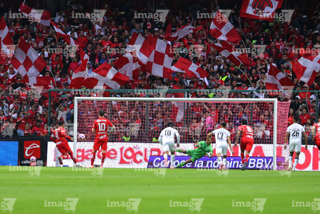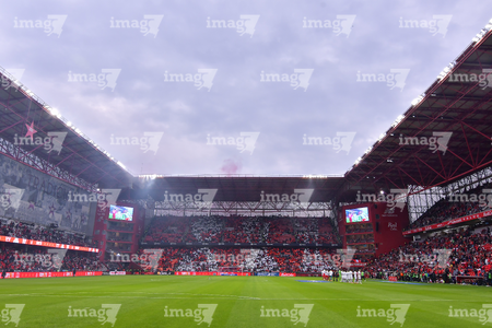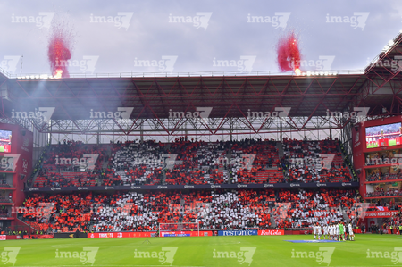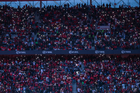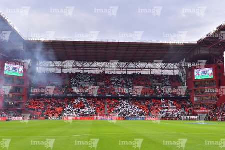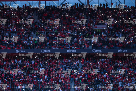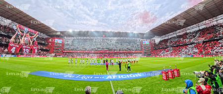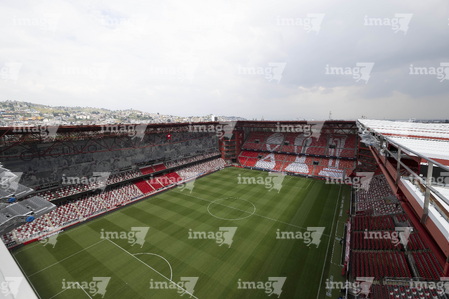 Toluca, Estado de México, 18 de octubre de 2025. Panorámica del estadio con mosaico, durante el partido correspondiente a la jornada 13 del torneo Apertura 2025 de la Liga BBVA MX, entre los Diablos Rojos del Toluca y los Gallos Blancos del Querétaro, realizado en el estadio Nemesio Diez. Foto: Imago7/ Rafael Vadillo