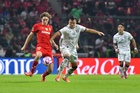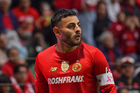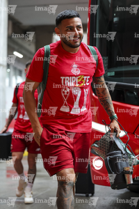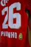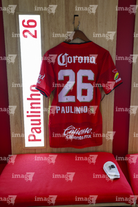 Toluca, Estado de México, 18 de octubre de 2025. Playera de Paulinho con parche de líder de goleo, durante el partido correspondiente a la jornada 13 del torneo Apertura 2025 de la Liga BBVA MX, entre los Diablos Rojos del Toluca y los Gallos Blancos del Querétaro, realizado en el estadio Nemesio Diez. Foto: Imago7/ Rafael Vadillo
