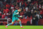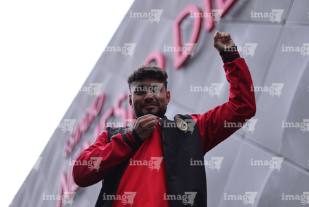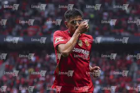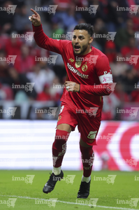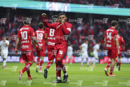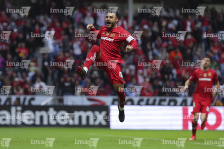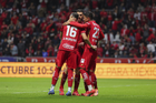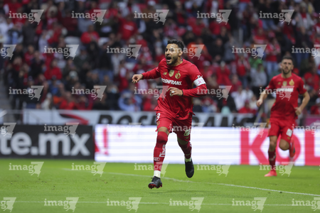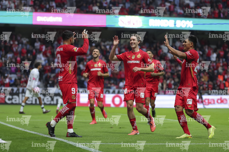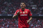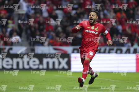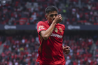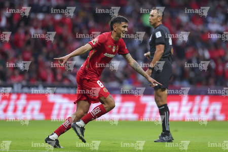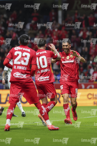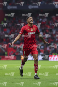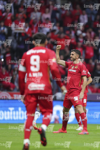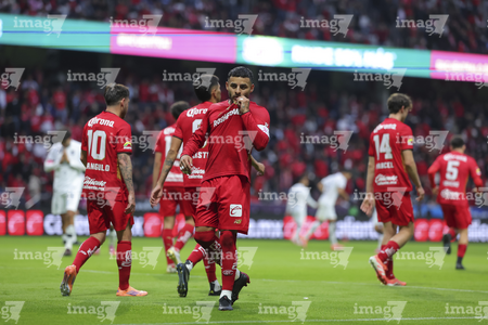 Toluca, Estado de México, 18 de octubre de 2025. Hugo González en festejo, durante el partido correspondiente a la jornada 13 del torneo Apertura 2025 de la Liga BBVA MX, entre los Diablos Rojos del Toluca y Club Querétaro, realizado en el estadio Nemesio Diez. Foto: Imago7/ Daniel Arriaga