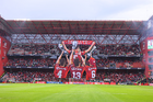 Toluca, Estado de México, 18 de octubre de 2025. Mosaico en gradas , durante el partido correspondiente a la jornada 13 del torneo Apertura 2025 de la Liga BBVA MX, entre los Diablos Rojos del Toluca y los Gallos Blancos del Querétaro, realizado en el estadio Nemesio Diez. Foto: Imago7/ Arturo Hernandez