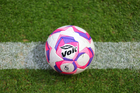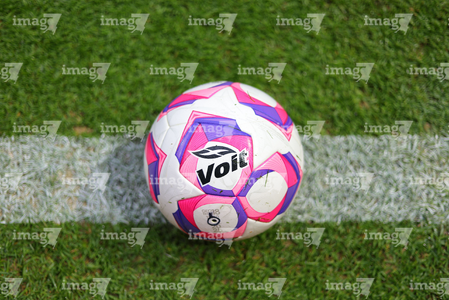 Toluca, Estado de México, 18 de octubre de 2025. Balón de futbol Voit Aereus de la Campaña Rosa para la concientización del Cáncer de Mama, durante el partido correspondiente a la jornada 13 del torneo Apertura 2025 de la Liga BBVA MX, entre los Diablos Rojos del Toluca y los Gallos Blancos del Querétaro, realizado en el estadio Nemesio Diez. Foto: Imago7/ Jesús Esquivel