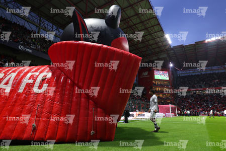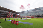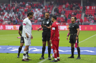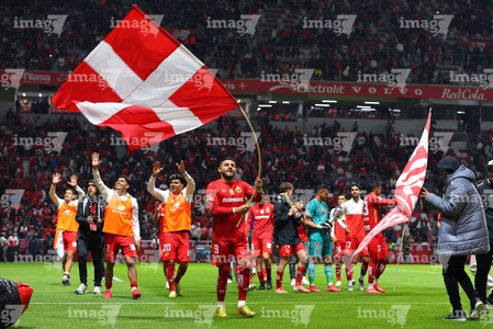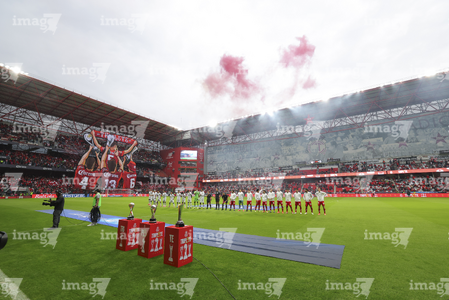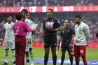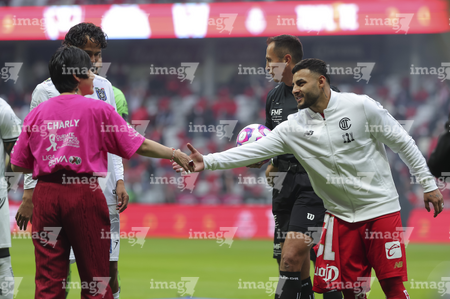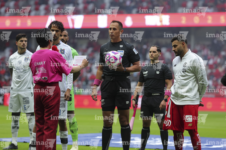 Toluca, Estado de México, 18 de octubre de 2025. Protocolo, durante el partido correspondiente a la jornada 13 del torneo Apertura 2025 de la Liga BBVA MX, entre los Diablos Rojos del Toluca y los Gallos Blancos del Querétaro, realizado en el estadio Nemesio Diez. Foto: Imago7/ Rafael Vadillo