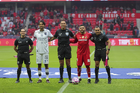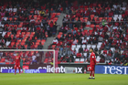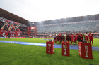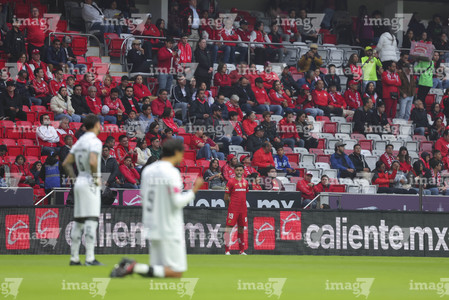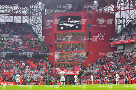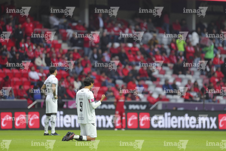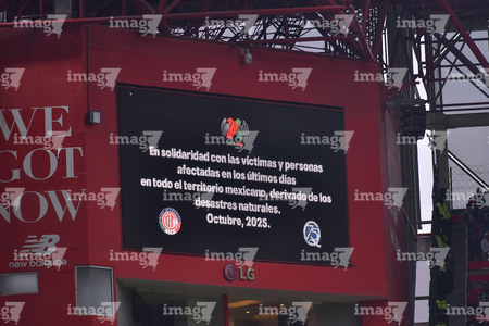 Toluca, Estado de México, 18 de octubre de 2025. Minuto de silencio por las víctimas de las inundaciones, durante el partido correspondiente a la jornada 13 del torneo Apertura 2025 de la Liga BBVA MX, entre los Diablos Rojos del Toluca y los Gallos Blancos del Querétaro, realizado en el estadio Nemesio Diez. Foto: Imago7/ Arturo Hernandez