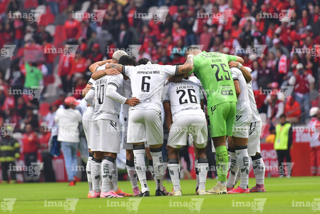 Toluca, Estado de México, 18 de octubre de 2025. Jugadores de Querétaro , durante el partido correspondiente a la jornada 13 del torneo Apertura 2025 de la Liga BBVA MX, entre los Diablos Rojos del Toluca y los Gallos Blancos del Querétaro, realizado en el estadio Nemesio Diez. Foto: Imago7/ Arturo Hernandez