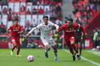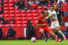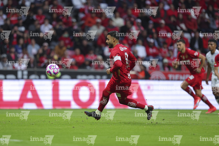 Toluca, Estado de México, 18 de octubre de 2025. Jesús Angulo "Canelo", durante el partido correspondiente a la jornada 13 del torneo Apertura 2025 de la Liga BBVA MX, entre los Diablos Rojos del Toluca y los Gallos Blancos del Querétaro, realizado en el estadio Nemesio Diez. Foto: Imago7/ Rafael Vadillo