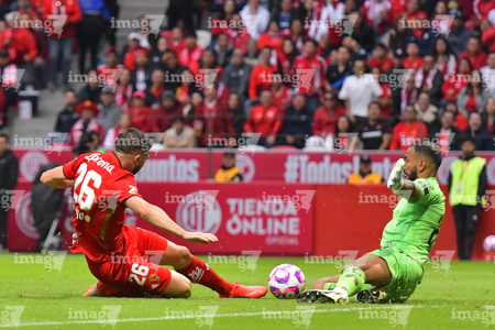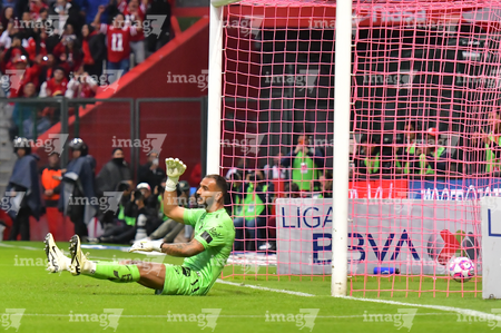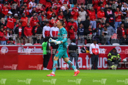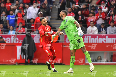 Toluca, Estado de México, 18 de octubre de 2025. Portigoles, durante el partido correspondiente a la jornada 13 del torneo Apertura 2025 de la Liga BBVA MX, entre los Diablos Rojos del Toluca y los Gallos Blancos del Querétaro, realizado en el estadio Nemesio Diez. Foto: Imago7/ Rafael Vadillo