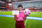 Toluca, Estado de México, 18 de octubre de 2025. Embajadora de la Campaña Rosa para la concientización del Cáncer de Mama, durante el partido correspondiente a la jornada 13 del torneo Apertura 2025 de la Liga BBVA MX, entre los Diablos Rojos del Toluca y Club Querétaro, realizado en el estadio Nemesio Diez. Foto: Imago7/ Daniel Arriaga