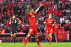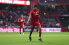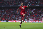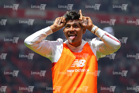 Toluca, Estado de México, 18 de octubre de 2025. Jesús Gallardo en festejo, durante el partido correspondiente a la jornada 13 del torneo Apertura 2025 de la Liga BBVA MX, entre los Diablos Rojos del Toluca y los Gallos Blancos del Querétaro, realizado en el estadio Nemesio Diez. Foto: Imago7/ Jesús Esquivel