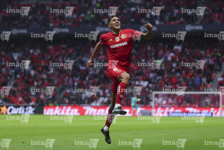 Toluca, Estado de México, 18 de octubre de 2025. Jesús Angulo "Canelo" en festejo de gol, durante el partido correspondiente a la jornada 13 del torneo Apertura 2025 de la Liga BBVA MX, entre los Diablos Rojos del Toluca y los Gallos Blancos del Querétaro, realizado en el estadio Nemesio Diez. Foto: Imago7/ Rafael Vadillo