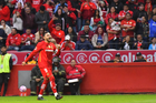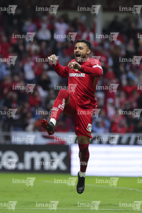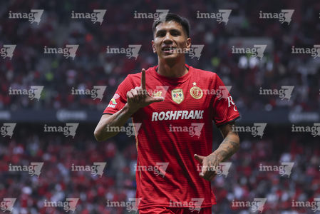 Toluca, Estado de México, 18 de octubre de 2025. Federico Pereira en festejo, durante el partido correspondiente a la jornada 13 del torneo Apertura 2025 de la Liga BBVA MX, entre los Diablos Rojos del Toluca y los Gallos Blancos del Querétaro, realizado en el estadio Nemesio Diez. Foto: Imago7/ Jesús Esquivel