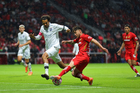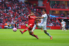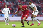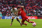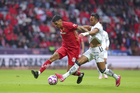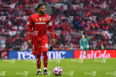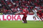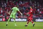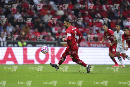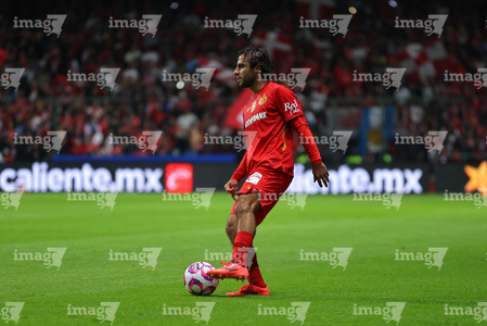 Toluca, Estado de México, 18 de octubre de 2025. Alek Álvarez, durante el partido correspondiente a la jornada 13 del torneo Apertura 2025 de la Liga BBVA MX, entre los Diablos Rojos del Toluca y los Gallos Blancos del Querétaro, realizado en el estadio Nemesio Diez. Foto: Imago7/ Jesús Esquivel