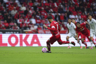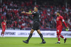Toluca, Estado de México, 18 de octubre de 2025. Ali Avila, durante el partido correspondiente a la jornada 13 del torneo Apertura 2025 de la Liga BBVA MX, entre los Diablos Rojos del Toluca y los Gallos Blancos del Querétaro, realizado en el estadio Nemesio Diez. Foto: Imago7/ Rafael Vadillo