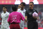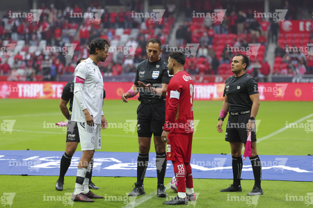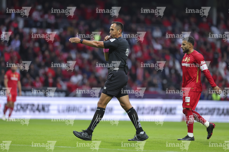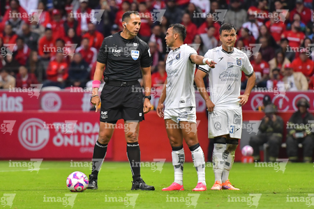 Toluca, Estado de México, 18 de octubre de 2025. Luis Enrique Santander, árbitro central, durante el partido correspondiente a la jornada 13 del torneo Apertura 2025 de la Liga BBVA MX, entre los Diablos Rojos del Toluca y los Gallos Blancos del Querétaro, realizado en el estadio Nemesio Diez. Foto: Imago7/ Rafael Vadillo