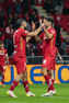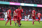 Toluca, Estado de México, 18 de octubre de 2025. Paulinho y Marcel Ruiz en festejo de gol, durante el partido correspondiente a la jornada 13 del torneo Apertura 2025 de la Liga BBVA MX, entre los Diablos Rojos del Toluca y los Gallos Blancos del Querétaro, realizado en el estadio Nemesio Diez. Foto: Imago7/ Rafael Vadillo