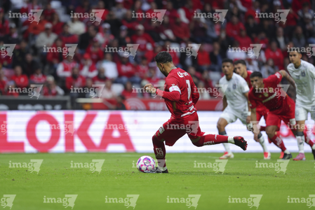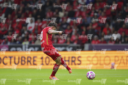 Toluca, Estado de México, 18 de octubre de 2025. Alexis Vega , durante el partido correspondiente a la jornada 13 del torneo Apertura 2025 de la Liga BBVA MX, entre los Diablos Rojos del Toluca y los Gallos Blancos del Querétaro, realizado en el estadio Nemesio Diez. Foto: Imago7/ Arturo Hernandez