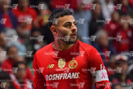 Toluca, Estado de México, 18 de octubre de 2025. Diego Reyes, durante el partido correspondiente a la jornada 13 del torneo Apertura 2025 de la Liga BBVA MX, entre los Diablos Rojos del Toluca y los Gallos Blancos del Querétaro, realizado en el estadio Nemesio Diez. Foto: Imago7/ Jesús Esquivel