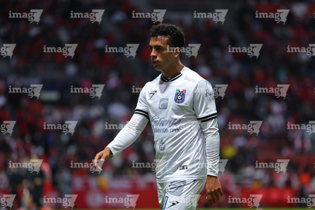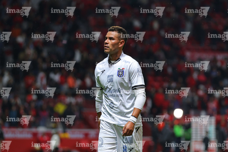 Toluca, Estado de México, 18 de octubre de 2025. Bruno Mendez, durante el partido correspondiente a la jornada 13 del torneo Apertura 2025 de la Liga BBVA MX, entre los Diablos Rojos del Toluca y los Gallos Blancos del Querétaro, realizado en el estadio Nemesio Diez. Foto: Imago7/ Rafael Vadillo