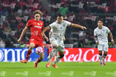Toluca, Estado de México, 18 de octubre de 2025. Nicolas Castro y Eduardo Armenta, durante el partido correspondiente a la jornada 13 del torneo Apertura 2025 de la Liga BBVA MX, entre los Diablos Rojos del Toluca y los Gallos Blancos del Querétaro, realizado en el estadio Nemesio Diez. Foto: Imago7/ Jesús Esquivel