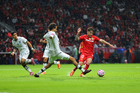 Toluca, Estado de México, 18 de octubre de 2025. Ángel Zapata en lamento, durante el partido correspondiente a la jornada 13 del torneo Apertura 2025 de la Liga BBVA MX, entre los Diablos Rojos del Toluca y los Gallos Blancos del Querétaro, realizado en el estadio Nemesio Diez. Foto: Imago7/ Jesús Esquivel