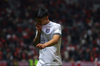 Toluca, Estado de México, 18 de octubre de 2025. Paulinho en lamento, durante el partido correspondiente a la jornada 13 del torneo Apertura 2025 de la Liga BBVA MX, entre los Diablos Rojos del Toluca y los Gallos Blancos del Querétaro, realizado en el estadio Nemesio Diez. Foto: Imago7/ Rafael Vadillo