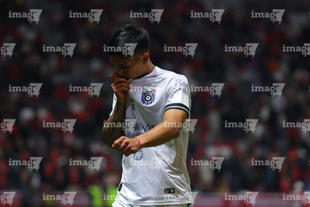 Toluca, Estado de México, 18 de octubre de 2025. Carlo García en lamento, durante el partido correspondiente a la jornada 13 del torneo Apertura 2025 de la Liga BBVA MX, entre los Diablos Rojos del Toluca y los Gallos Blancos del Querétaro, realizado en el estadio Nemesio Diez. Foto: Imago7/ Jesús Esquivel